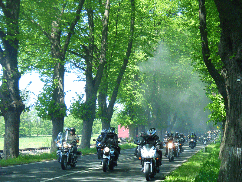 So findet hier am ersten Sonntag im Mai alljährlich ein Bikergottesdienst statt, bei welchem sich die Biker aus vielen deutschen Landen und sogar Scandinaviens treffen. Auf ihren individuellen, funkelnden Maschinen geht es dann in voller Biker- Montur mit dem Segen des Pastors auf Sternfahrt ins Umland. Ein riesiger Schwarm nicht endend wollender tausender Biker dröhnt dann beeindruckend über den Asphalt der grünen Alleen im Doberaner Land.Über vieles Interessantes (Historisches und Aktuelles) mehr zum Doberaner Münster kann man sich natürlich auf den Bad Doberaner Münster - Seiten ausführlicher informieren.
